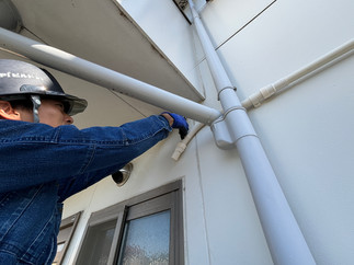 コーキング作業(防水処理)をしながら外壁に配管を敷設していきます。
